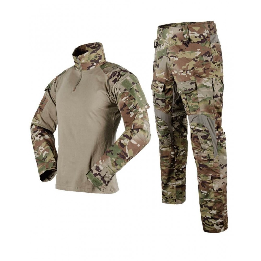 Тактический летний камуфляжный костюм с наколенниками и налокотниками является удачным вариантом для экипировки, так как имеет отличную защиту от травм коленных и локтевых суставов. Защитная система предохраняет от ударов и падений и в момент боевых действий.